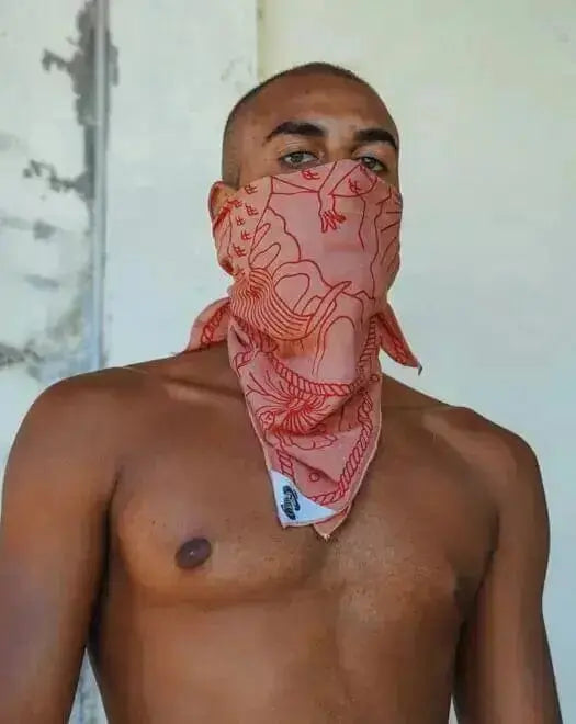 The design of this bandana is inspired by vintage travel posters and the tattoo art of Sailor Jerry.